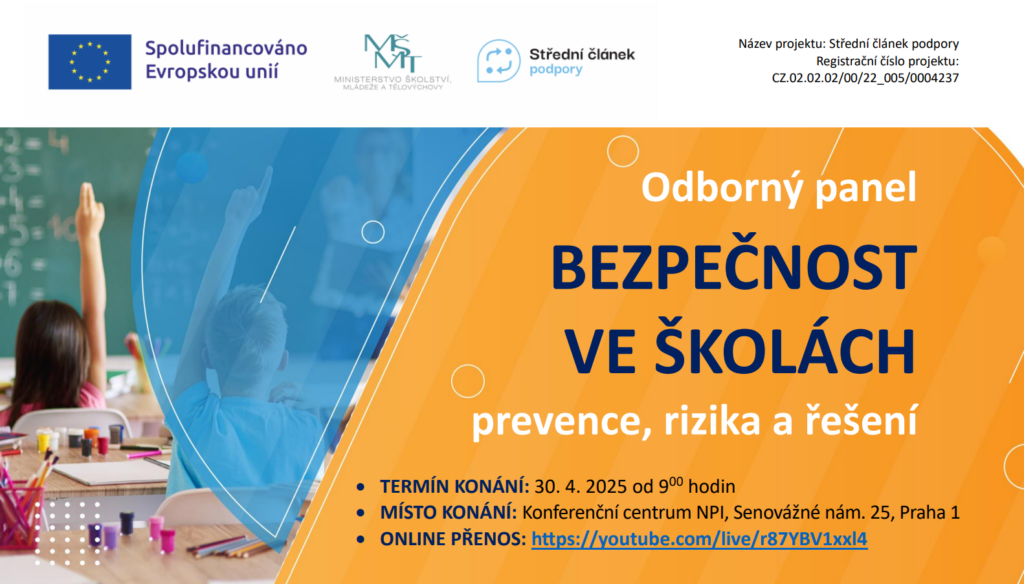 Střední článek podpory MŠMT uspořádal odborný panel zaměřený na bezpečnost ve školách, prevenci rizik a krizovou připravenost. Setkání, které proběhlo 30. dubna 2025 v Praze, nabídlo vedení škol, jejich zřizovatelům i odborné veřejnosti konkrétní nástroje, příklady dobré praxe a inspiraci pro vytváření bezpečného a podpůrného prostředí. Panel propojil odborníky z různých oblastí – od školství přes bezpečnostní složky až po neziskový sektor. Cílem bylo posílit spolupráci a připravenost škol na každodenní i mimořádné situace.