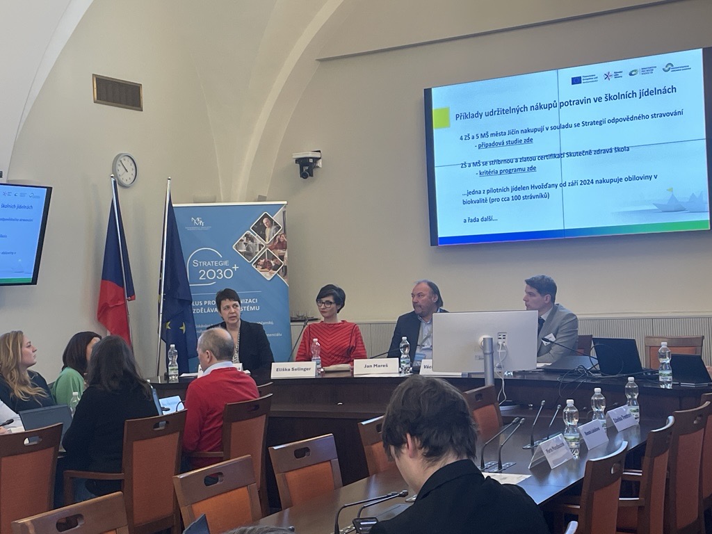 Mgr. Monika Dobrovodská z Ministerstva pro místní rozvoj vysvětlila roli svého ministerstva v procesu změny vyhlášky o školním stravování. Jedná se především o režim veřejné zakázky, kdy by měly být vyvíjeny snahy pro zacílení nákupů do regionů včetně využití sezónního ovoce a zeleniny, dosažení udržitelného stravování a společných nákupů biopotravin a dalších surovin pro více jídelen apod.